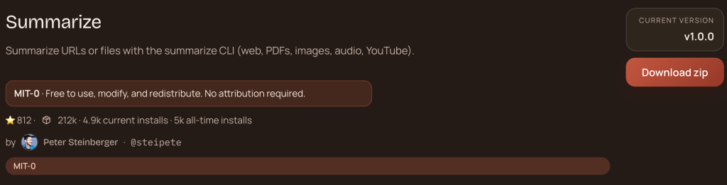 clawhub install summarize