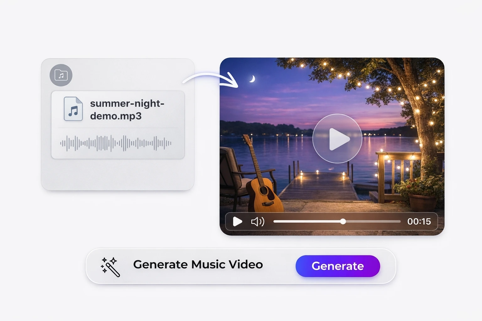 ¿Quieres mostrar tu canción original con un video musical cinematográfico sin pasar horas editando? Sube tu audio, añade una imagen y describe una atmósfera como "grano de película", "ciudad ciberpunk" o "estilo cómic retro". La IA lo convierte al instante en un video musical sincronizado, listo para YouTube, SoundCloud o Spotify Canvas.