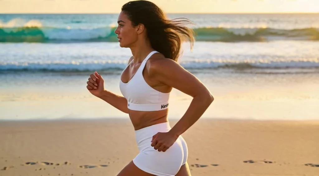 • una carrera en la playa al amanecer