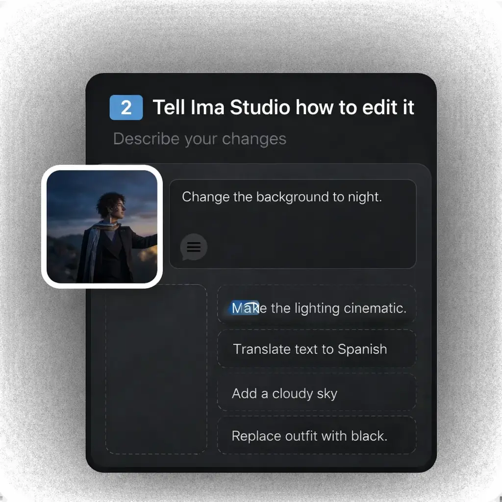 इमा स्टूडियो का एजेंट इंजन संवादात्मक संपादन की सुविधा देता है।.