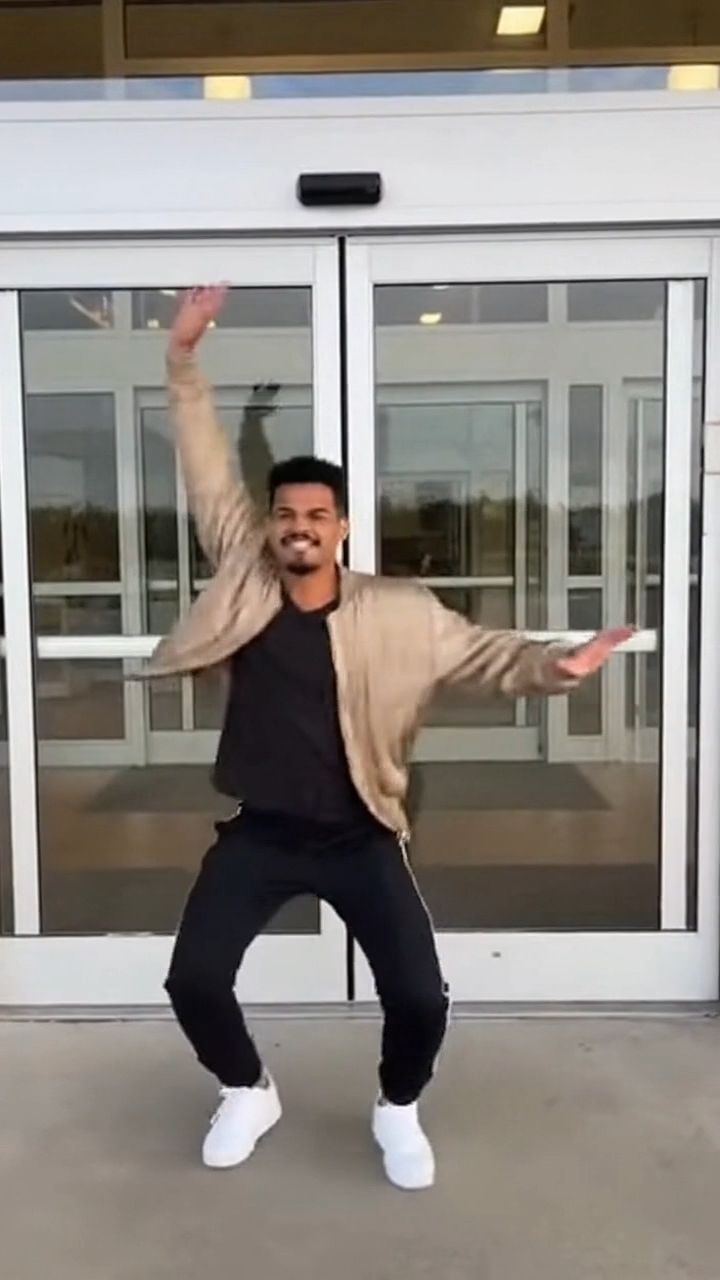Fixed camera shot of a person confidently approaching an automatic sliding door in a 9:16 vertical format. The person performs exaggerated dance moves and gestures in front of the door, but the door refuses to open. The person continues with increasingly dramatic movements, trying to trigger the sensor, creating a comical interaction between human and door.