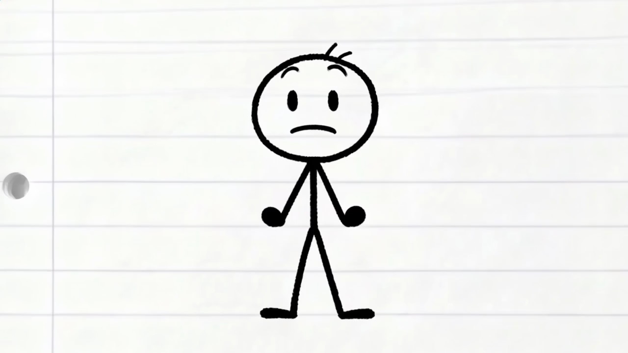 Hand-drawn, cartoonish stick-figure style. Black line sketches on lined notebook paper. Simple, expressive poses with minimal detail. Slightly exaggerated facial expressions. Childlike or playful proportions. Appears like quick notebook doodles, hand-drawn black lines on lined notebook paper, minimal, simple. Should be black and white and more simplified, like stick person drawing level, still exaderate features and actions to add characterVideo representing the line I used to think the goal was stacking clubs and titles. I was actually in 14 different clubs once The kid should looked stressed out, should have a transition in and out, because all the clubs and activities are being thrown onto him and he cant handle it like there should be books, sports balls, and other things thrown at him and hes trying to balance them all