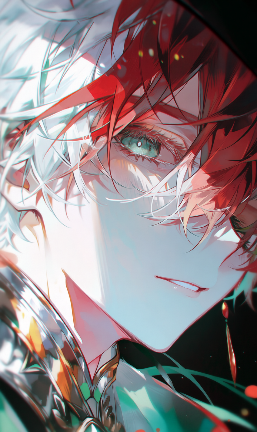 、A red, white, and green close-up portrait of a single character, strong emphasis on character design and facial expression, candid and natural moment.