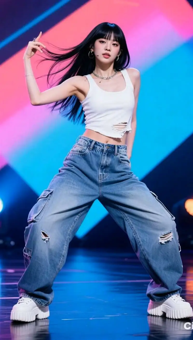 Holiday dance practice MV snippet in 9:16 format, featuring the person from the uploaded image with their exact face, identity, body proportions, and original pose preserved. Inside a dim dance studio, soft snow gently falls in the air as a surreal festive effect. A Christmas tree with warm fairy lights glows softly in the background, adding cozy contrast to the sleek rehearsal space. Rhythmic cinematic lighting pulses subtly with the music beat — soft reds, greens, and golds shifting across the floor. Smooth, floating camera motion glides around the idol, capturing their dance-practice vibe with K-pop stage rehearsal energy. Tiny glitter particles drift through the studio lights, creating a dreamy, festive shimmer. High-resolution, filmic textures, polished MV atmosphere, expressive but natural movement, clean silhouettes, and soft holiday glow throughout.