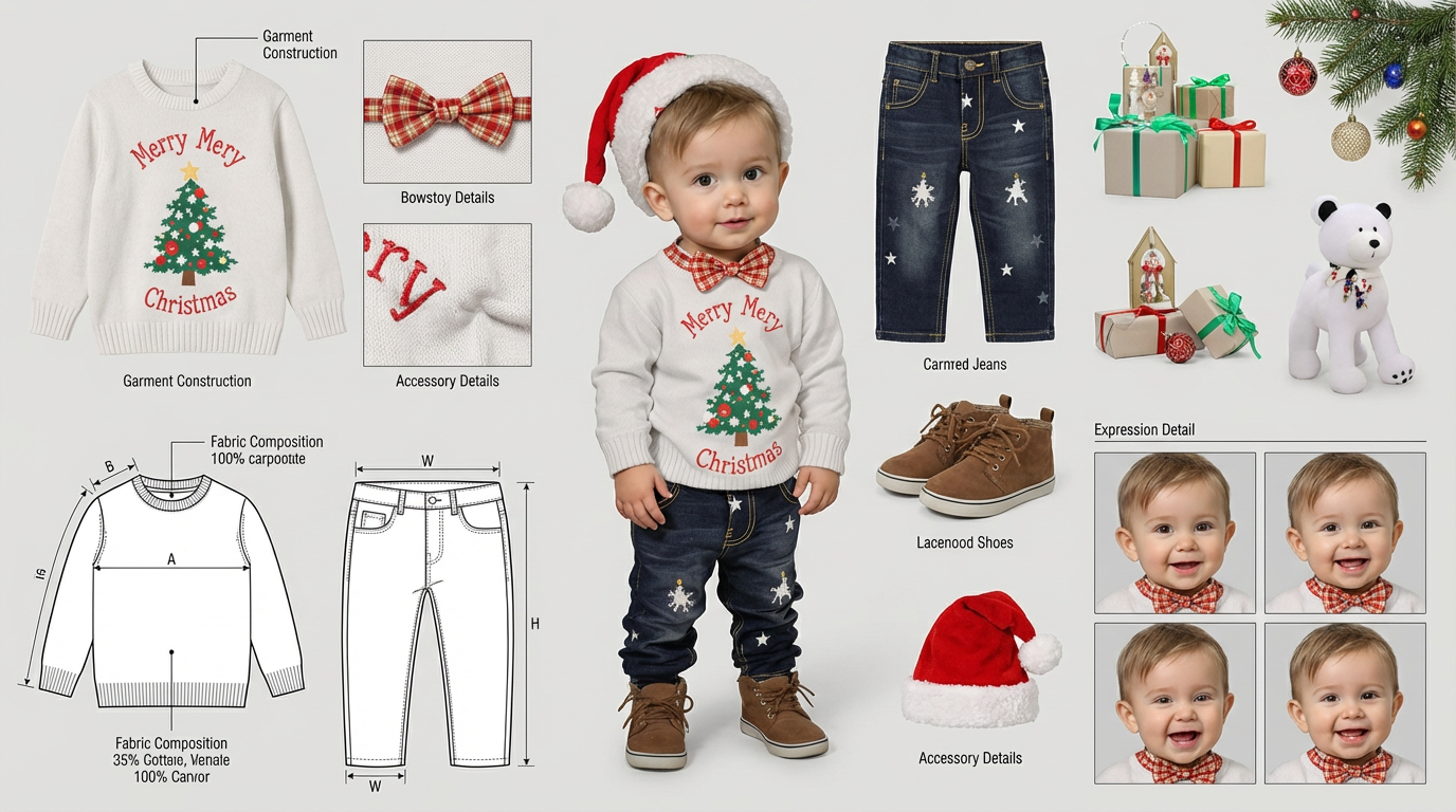 Create a comprehensive professional fashion technical document collage featuring wardrobe deconstruction and style profile. Generate a hyper-realistic, photographic style collage with the central subject from the uploaded image in full-body pose as the main focus. Include detailed product shots of all clothing items and accessories, technical flat-lay schematics of foundational garments, lifestyle contextual items, and expression detail sheets. Arrange all elements in a clean, modular layout on neutral white or light gray background with professional annotations and minimalist font labels. The overall aesthetic must be strictly photographic, resembling a high-end fashion technical document with balanced composition. Output images only, no text.