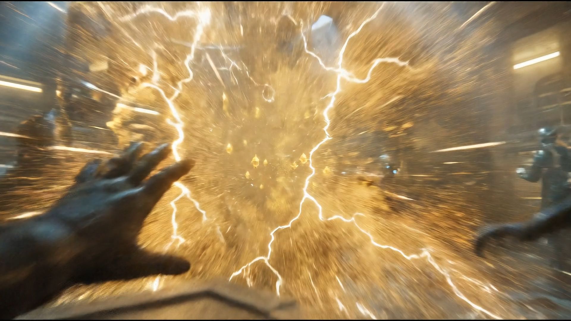 The movement starts with a fast forward rush into the gold holographic pulse of the first frame. The handheld camera with earthquake effect'breaks through' the hologram, which dissolves into a river of gold. Maintaining a high-speed aerodynamic FPV feel, the camera streaks through the underwater , illuminated by golden fishes. The camera completes a smooth, continuous zoom-out to resolve perfectly into the wide-angle aerial hero view of the titanic and the ai robot scans, with no visible cuts. Audio: High-tech ui elements scifi ai hum, the soft rush of gold, and a majestic orchestral Arabian score we can see a text near robot found treasure by Ai in small near the research drone rays
