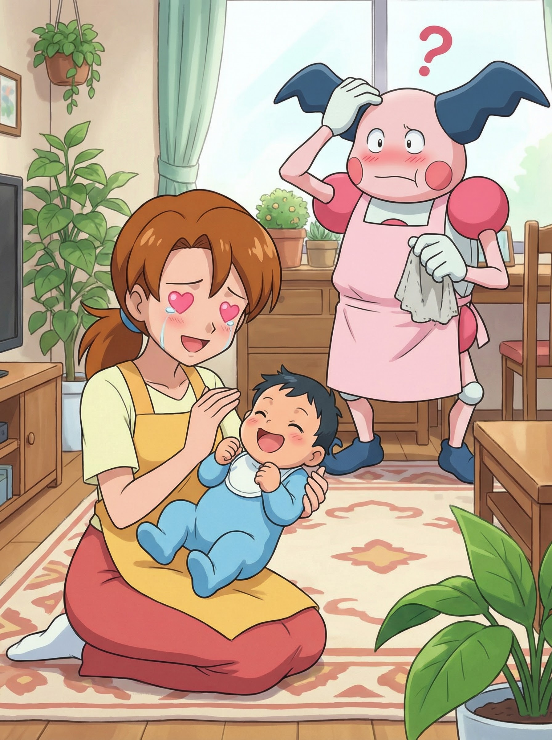 (Pokémon Anime Style) (Textless) Delia Ketchum fawning over a baby version of Ash, Mr. Mime is confused