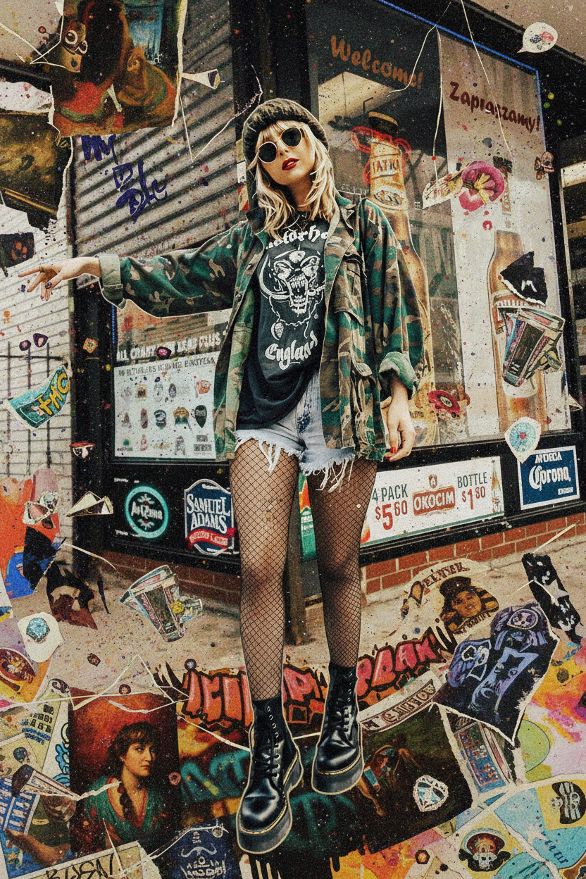 Collage-like features, old-fashioned paintings, exaggerated poses, exaggerated expressions, character images consistent with reference images, full-length portraits of old-fashioned QQ show characters, subculture, old-fashioned style, grunge-style high-definition fashion, dopamine rushes, maximalism, various luxury decorative items, comic books, slightly messy features. Output images only, no text.