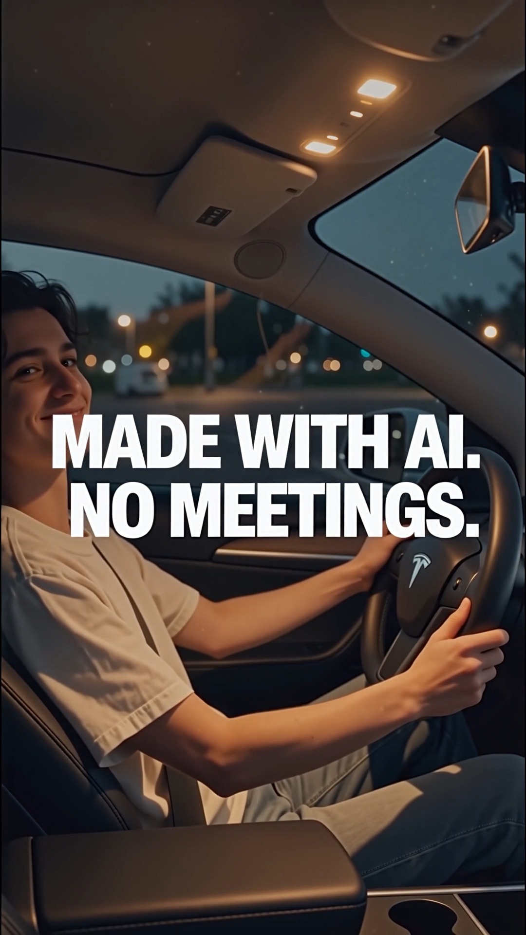 SHOT 1 (0–3s): Parked Tesla at night, interior dash-mounted camera. Creator in driver seat, relaxed posture. Warm cabin lighting. Subtle facial movement—eyes thinking, micro-smile forming. VO (natural, conversational): “Brands pay agencies millions for ads.”