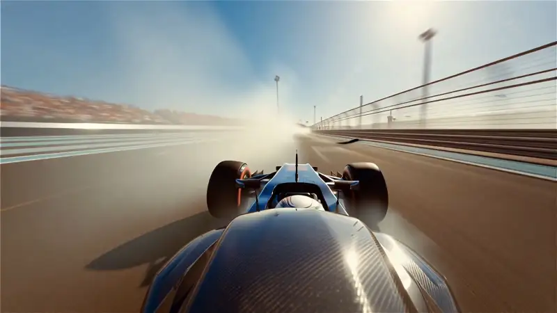 5 秒视频,震撼的 F1 赛车飞驰场景。 一辆 F1 赛车以极高速度冲刺,画面出现强烈的动感模糊与热流扭曲。 镜头近距离跟随赛车移动,带有轻微震动感,营造高速冲击力。 音效澎湃:引擎怒吼、风声呼啸、赛道回响充满力量感。 阳光反射在车身上,赛车过弯时溅起火花,极具速度与激情。 动效流畅、视觉震撼、富有张力与临场感。