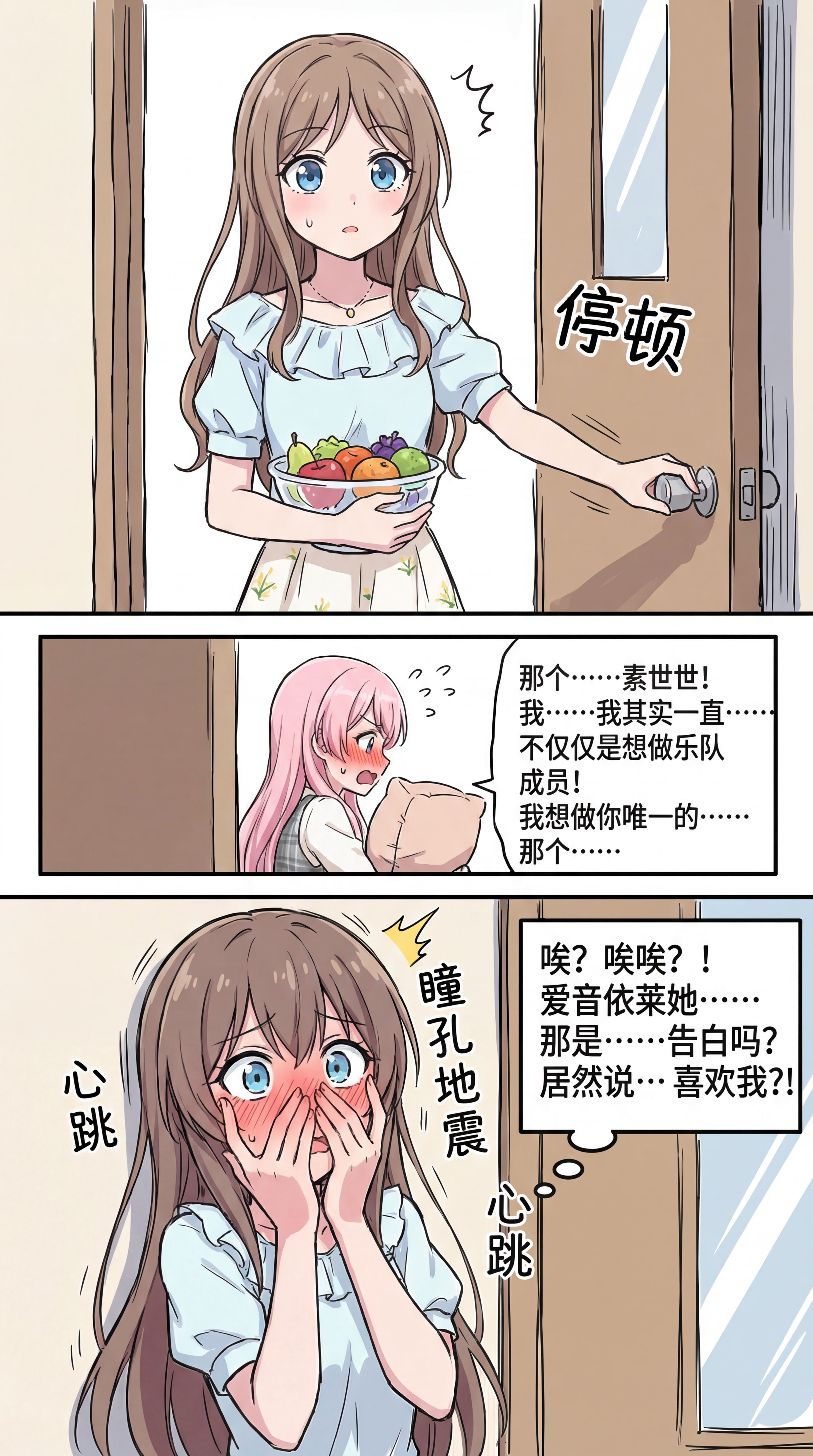 台词(素世·内心):“唉?唉唉?!爱音依莱她……那是……告白吗?居然说……喜欢我?!”